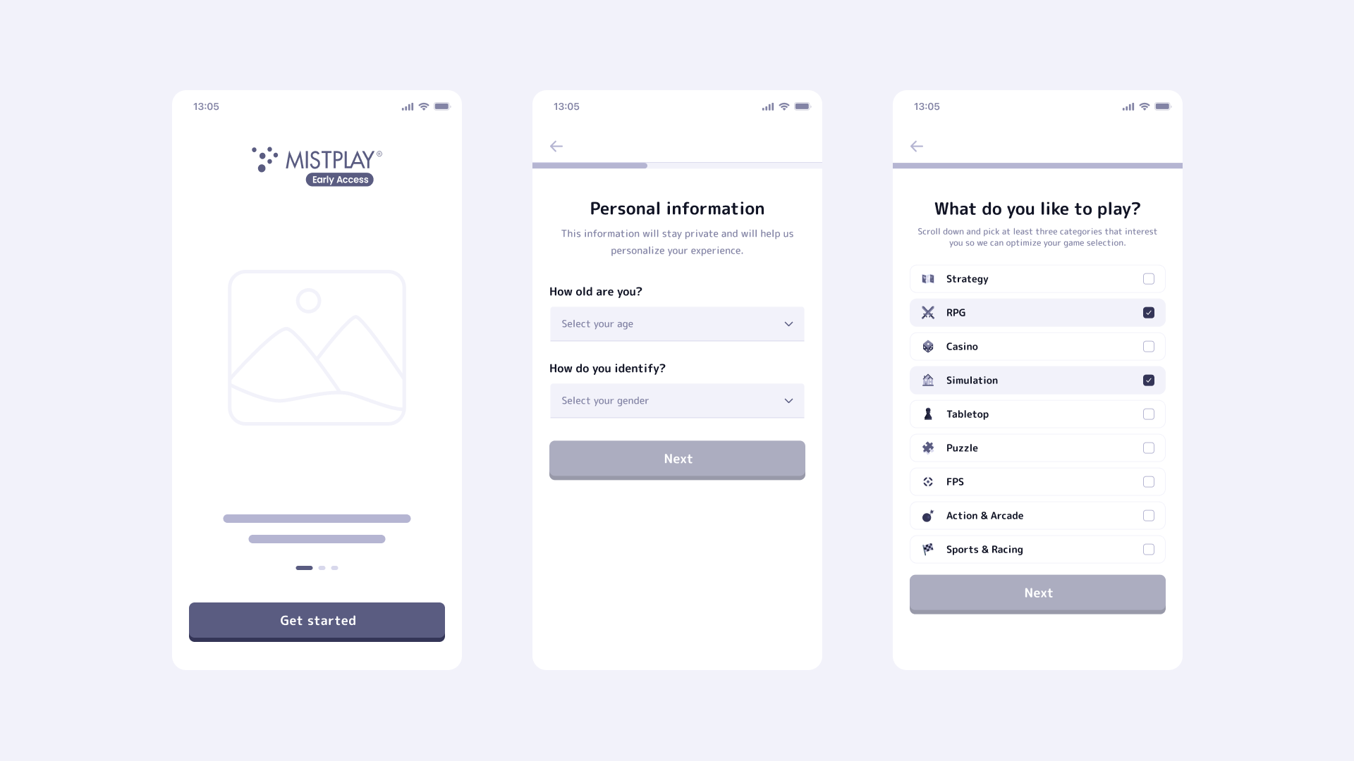 The next step was to map all screens and interactions. Mistplay for Android didn’t previously have a user flow chart, so I worked from scratch based on the android application and iOS limitations to come up with what I believed would be the main user flow for the PWA release.