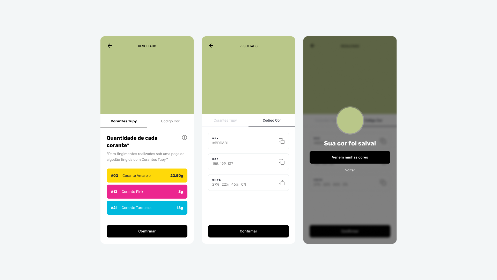 Tupy Corantes is a traditional Brazilian brand of fabric dyes, present in the daily lives of Brazilians for 45 years. The brand offers a diverse range of colors for various types of fabrics, allowing users to mix them to create new shades. With this in mind, the Tupy Color Mixer app was created.